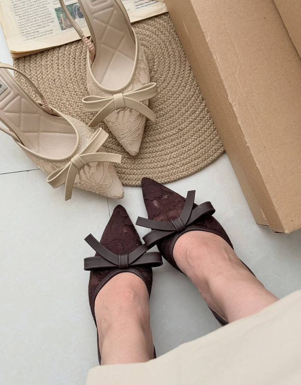 صندل پاپیونی گیپور مشکی کرم قهوه ای ترند شیک مجلسی پاشنه بلند زنانه ( 991 )
