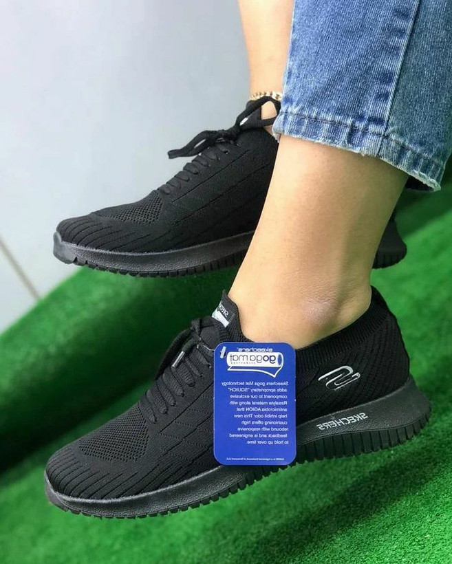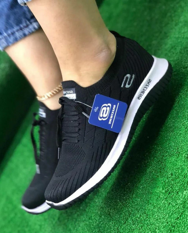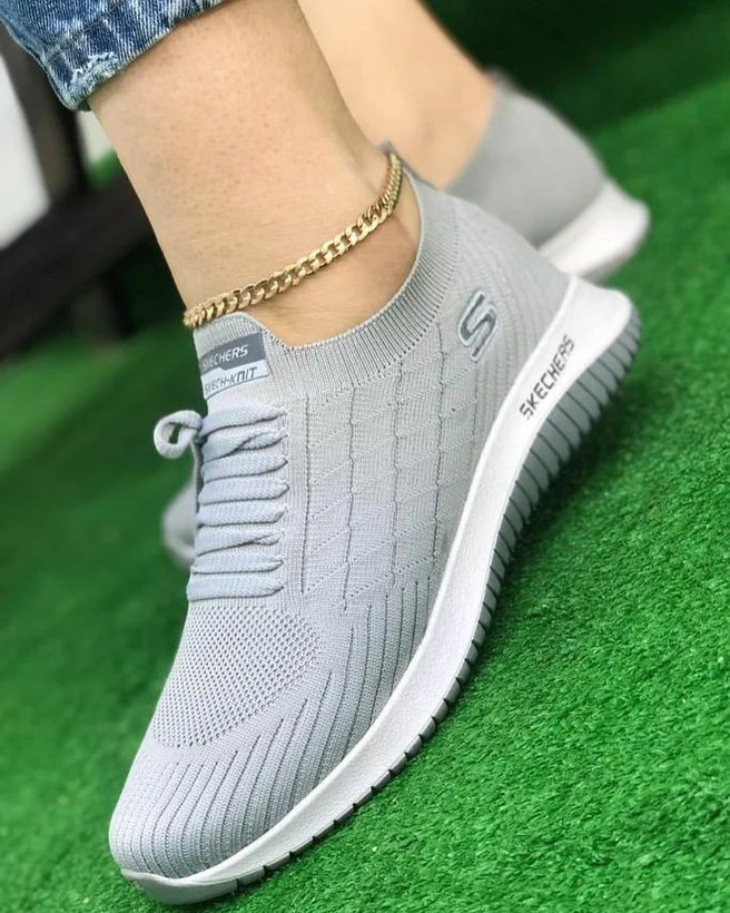 کتونی کشبافت اسکیچرز مشکی سفید طوسی جورابی زنانه کتونی ونس اسپرت ( 4200 )