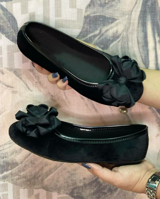 بابت پاپیونی ساتن روفرشی کفش مشکی مجلسی شیک زنانه دخترانه پاپوش سوییت ( 6700 )