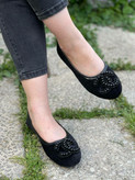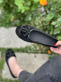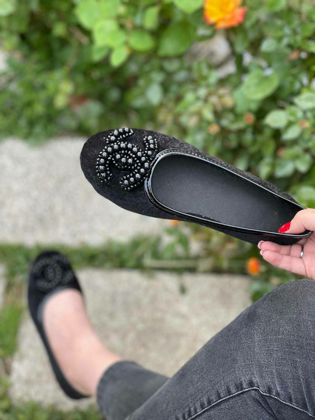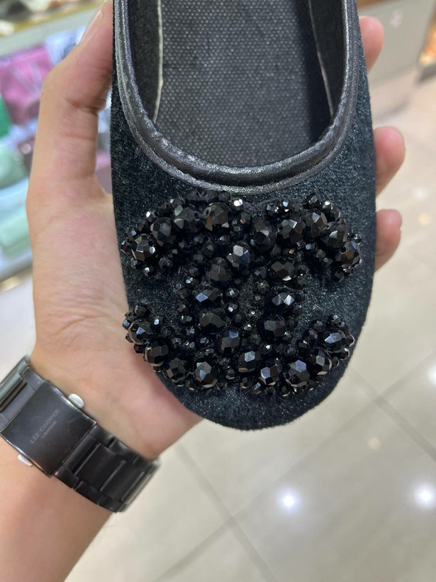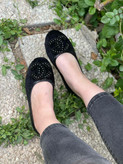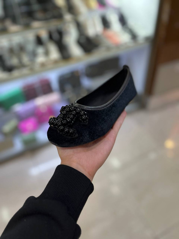 بابت روفرشی مرواریدی شنل کفش مجلسی شیک سوییت مشکی پاپوش کالج مخمل ( 6900 )