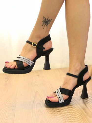 کفش پاشنه بلند ساتن مشکی نگینی زنانه دخترانه صندل پاشنه دار نگیندار ( 335 )۱٬۰۹۹٬۰۰۰ تومان